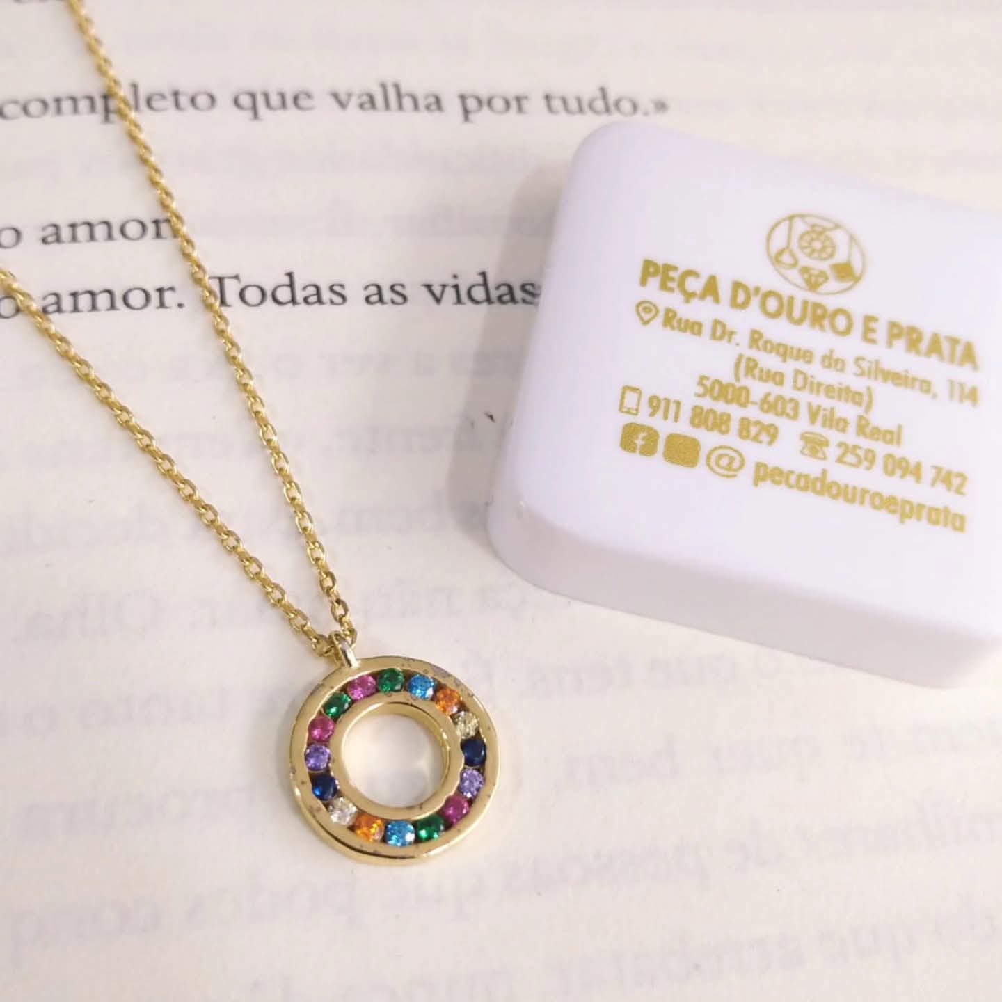 Fio em Prata Dourada 925 com pendente circular adornado de zircónias coloridas
