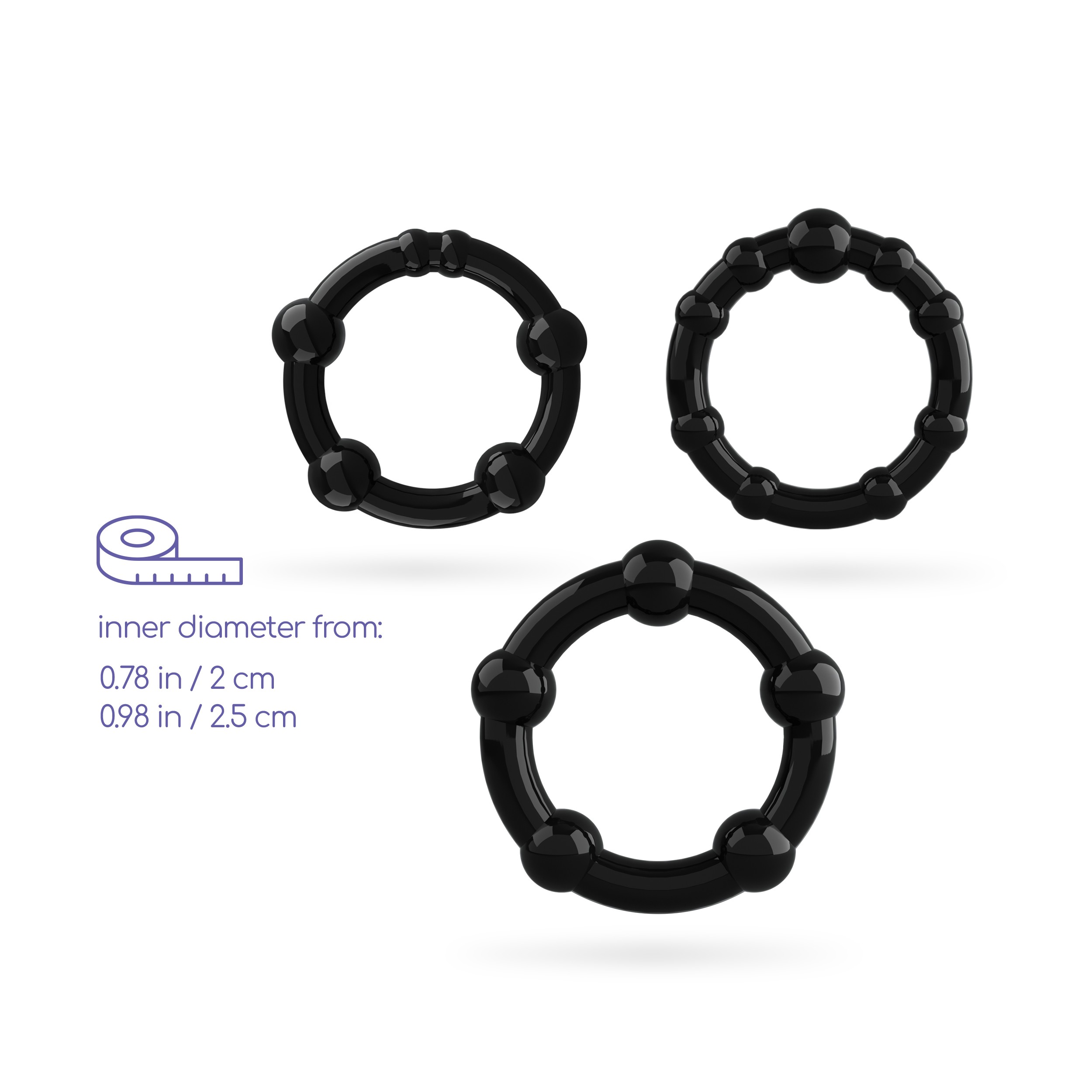 Intensifique as suas ereções e tenha mais stamina, estes três anéis podem ser usados em conjunto ou em separado. Experimente diferentes combinações e deixe que o firme aperto estimule os seus sentidos.Características principais:· 3 anéis de diferentes dimensões;· Saliências estimulantes;· Grande elasticidade;· Aperto perfeito;· Ideais para o pénis e testículos;· Retardam a ejaculação;· Use a sós ou acompanhado;· Sem ftalatos;· Feitos em TPE hipoalergénico;· À prova de água.Use com lubrificante de...